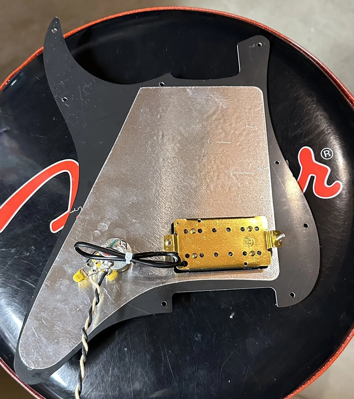 Add bold style and powerful tone to your guitar with this artist-inspired loaded pickguard, featuring a high-output Zebra Invader-style humbucker and USA Fender® spec wiring. Designed for clean aesthetics and aggressive sound, this setup delivers performance and simplicity in one easy drop-in package.